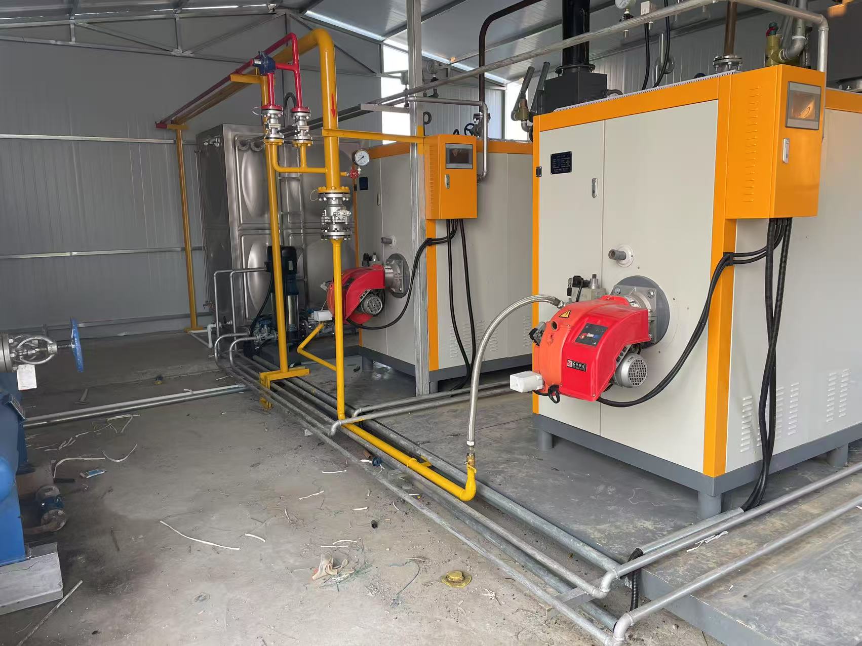 這是第二個項目、如皋廚房垃圾處理設備安裝工地實景!配套2臺500公斤免檢蒸汽發生器。
